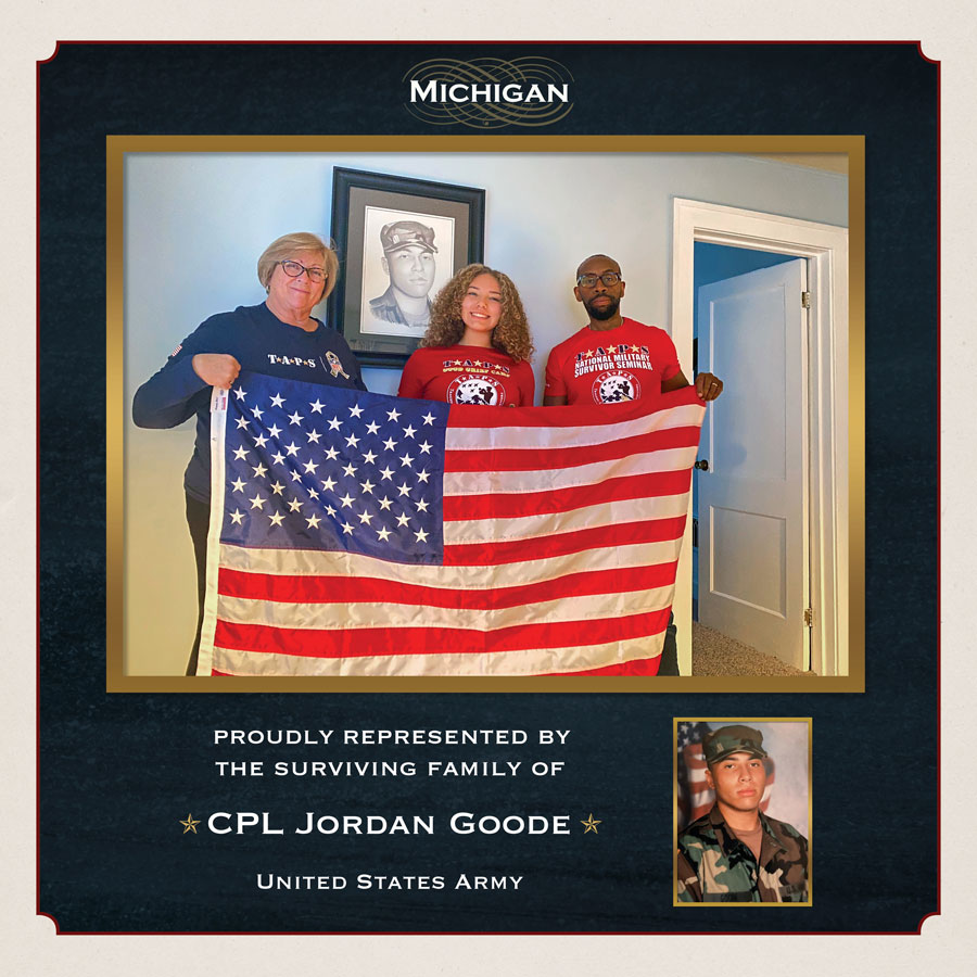 Below are the graphics from a commemorative book sharing the journey of these magnificent American flags, representing all Gold Star Families, given to TAPS from the Inauguration of our Commander in Chief and then proudly presented to surviving loved ones of our military fallen to honor, remember and celebrate their heroes. Each of these flags has a new purpose and a new mission: to give comfort to a grieving family on behalf of a grateful nation.