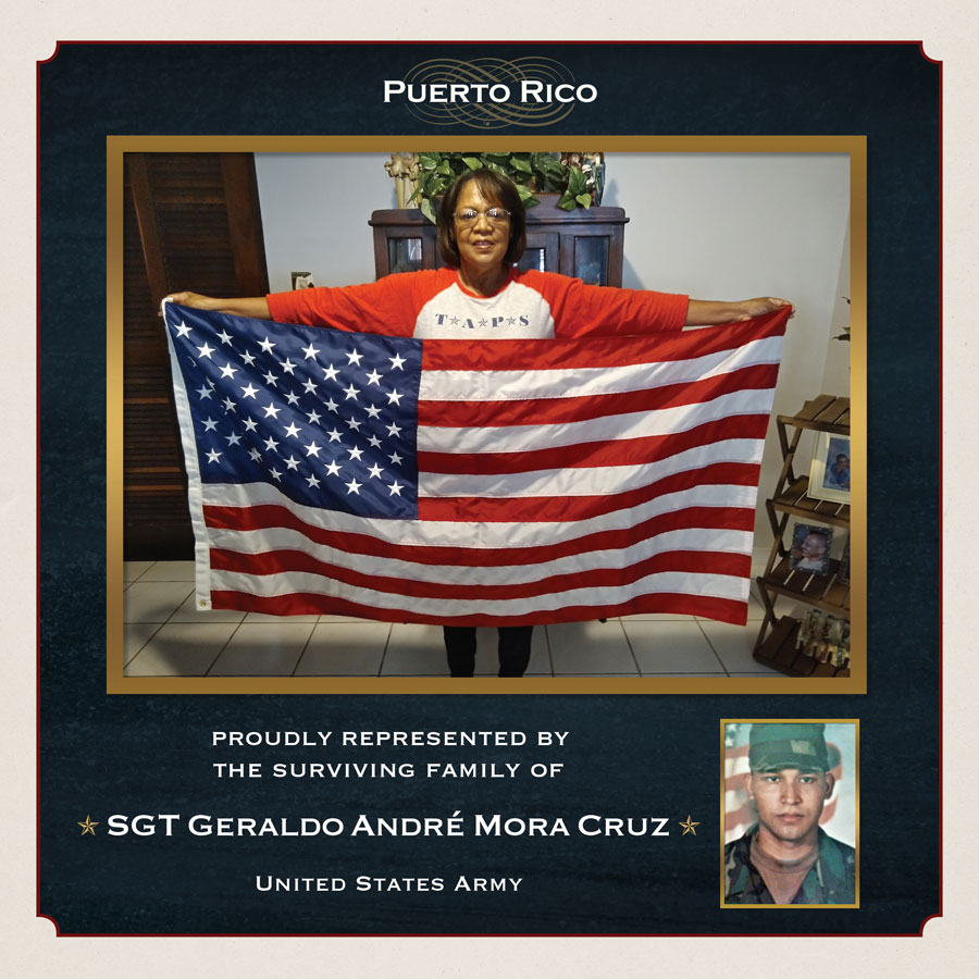 The Families of America’s Fallen Heroes have a special relationship with the American flag. Their loved ones raised their right hand standing before it and pledged to protect it with their life and defend the nation it represents. Their heroes wore the American flag on their uniform and stood at attention each day to honor it. When they made the ultimate sacrifice, they were laid to rest in a casket draped with the American flag.