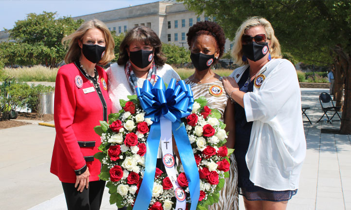 Representing TAPS at the special Pentagon observance are: (left to right) Bonnie Carroll, TAPS President and Founder; Lisa Dolan, Surviving spouse of Captain Robert "Bob" Dolan, U.S. Navy who was killed at the Pentagon on 9/11; Colonel Marilyn Wills, U.S. Army (Ret.), Pentagon survivor and recipient of the Purple Heart and Soldier's Medal for her actions that saved lives on 9/11 and past Good Grief Camp mentor; Marie Campbell, TAPS Special Advisor.