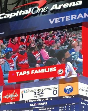 The Washington Capitals, a longtime teams4taps partner, and LiUNA, the team's military appreciation sponsor, honored TAPS families on the jumbotron during a special game.