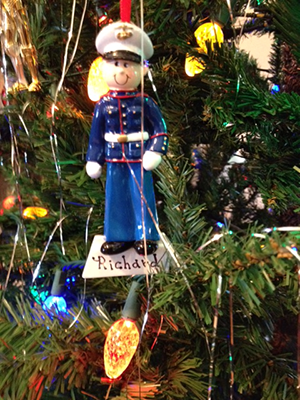 "Kat, I think we should decorate the tree with things that remind us of Rich, things that he liked so we can 'feel' him in the room. I'm thinking we can use red, white and blue ribbons, and Marine and Star Wars memorabilia."