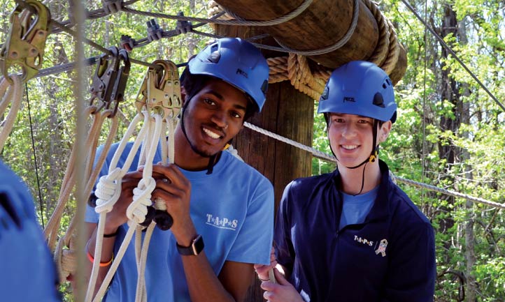 taps young adult attendees on ropes course