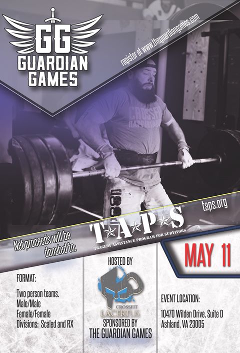 Guardian Games hosted by CrossFit Lacertus May 11, 2019, 8:00 AM-5:00 PM 10470 Wilden Drive, Suite D, Ashland, Virginia About the Guardian Games Register About the Guardian Games Register