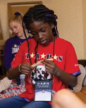 TAPS Good Grief Camp is led by experts in the fields of child development, mental health and education. Programming throughout the weekend mirrors the adult curriculum and provides families with a common language crucial to strengthening family bonds. Children and teens will honor their loved one, connect with their peers, and learn coping skills through games, crafts and other age-appropriate activities in a fun and supportive environment.