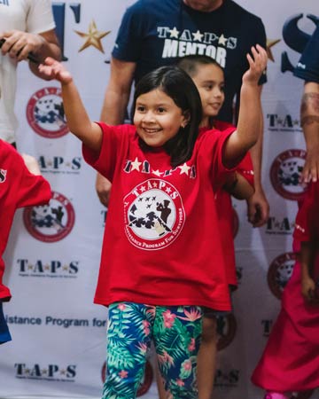TAPS Good Grief Camp is led by experts in the fields of child development, mental health and education. Programming throughout the weekend mirrors the adult curriculum and provides families with a common language crucial to strengthening family bonds. Children and teens will honor their loved one, connect with their peers, and learn coping skills through games, crafts and other age-appropriate activities in a fun and supportive environment.