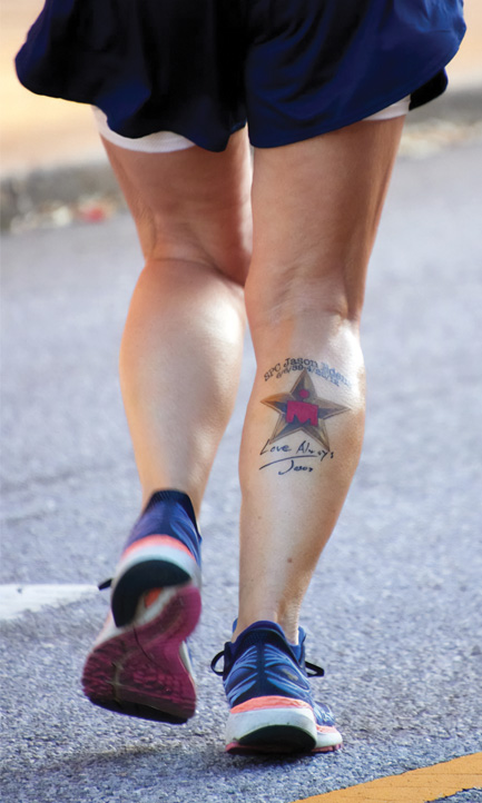 Memorial ribbons, birds, badges of accomplishment, they’re all reminders of connection and strength. Janet Harpool Crane’s tattoo is a reminder that she completed an Ironman race on Sept. 29, 2019, Gold Star Mother’s Day. She paired it with her son’s signature and his birth and death dates, making sure “the dash” was included.