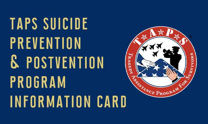 NOTE: The TAPS website is not intended as an intervention for those who may be in crisis. If you or someone you know are experiencing behaviors or thoughts of suicide, help is available. Please contact the National Suicide Prevention Lifeline toll-free at 988.